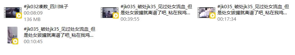 【影片名称】:专约极品嫩妹『jklove6969』jk32 jk35两部,见过处女流血,但是处女拔罐就离谱了吧(4V)
